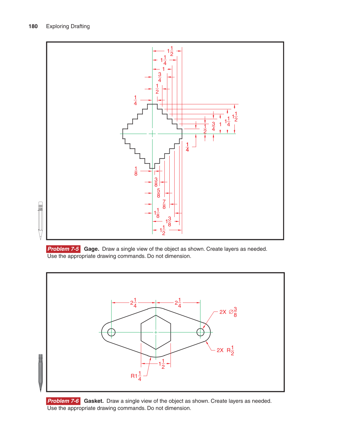 Problem 7-6 Gasket. Draw a single view of the object as shown. Create layers as needed.