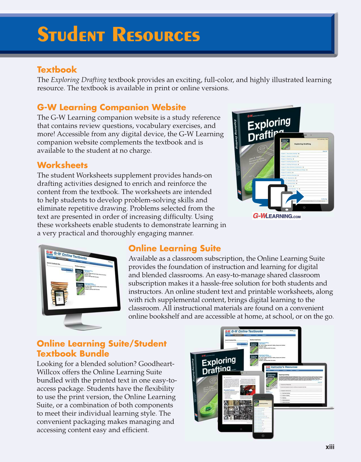 The Exploring Drafting textbook provides an exciting, full-color, and highly illustrated learning
