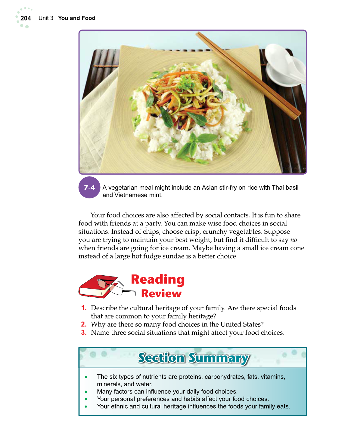 „ Your ethnic and cultural heritage influences the foods your family eats.