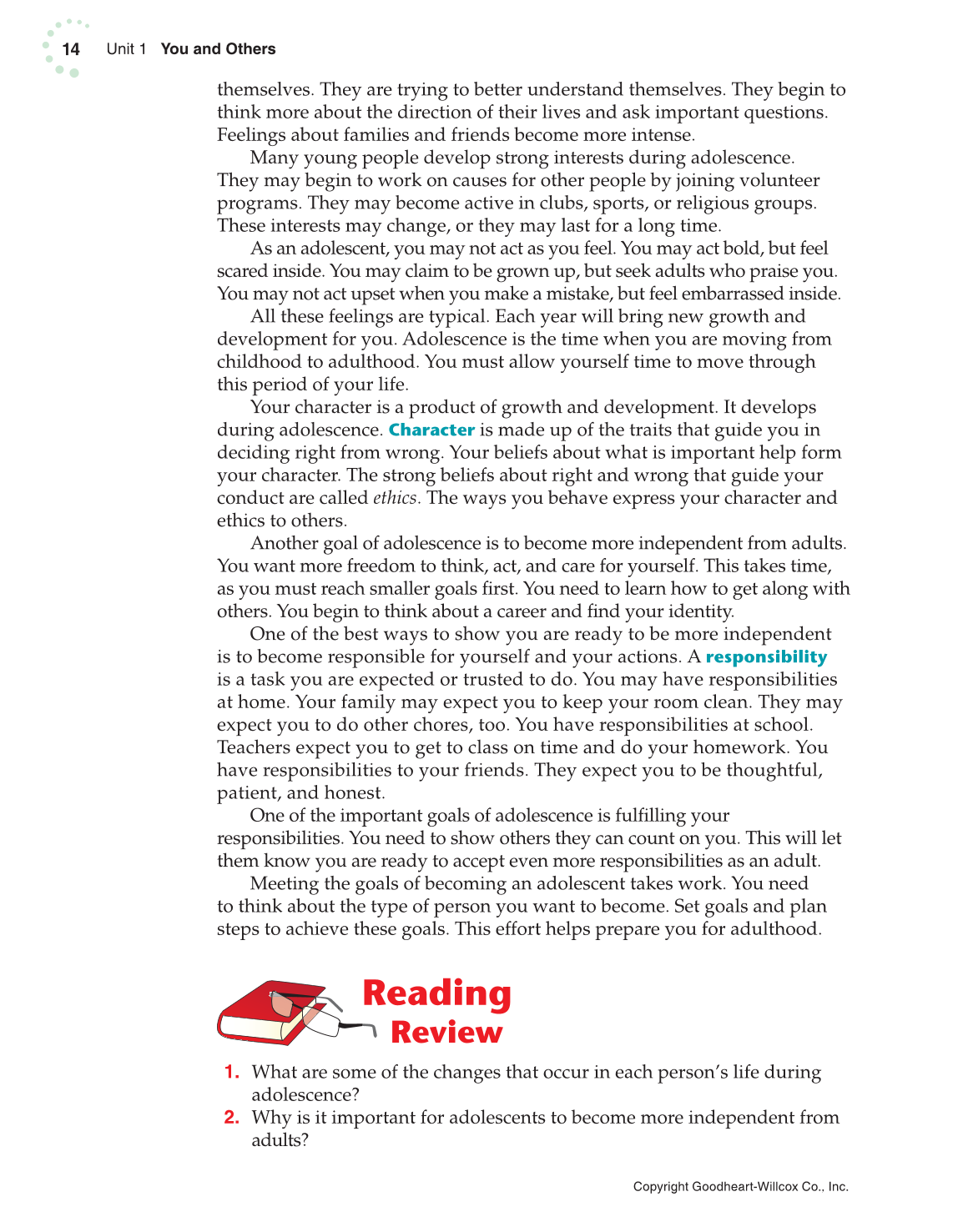 steps to achieve these goals. This effort helps prepare you for adulthood.