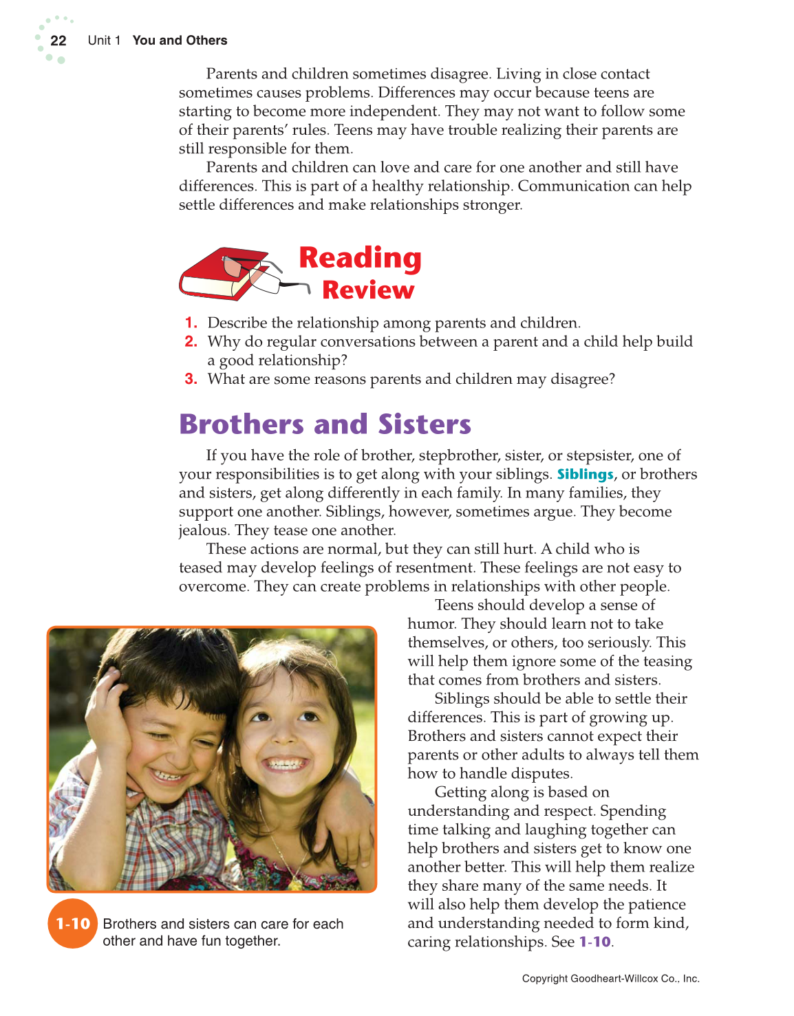 your responsibilities is to get along with your siblings. Siblings, or brothers
