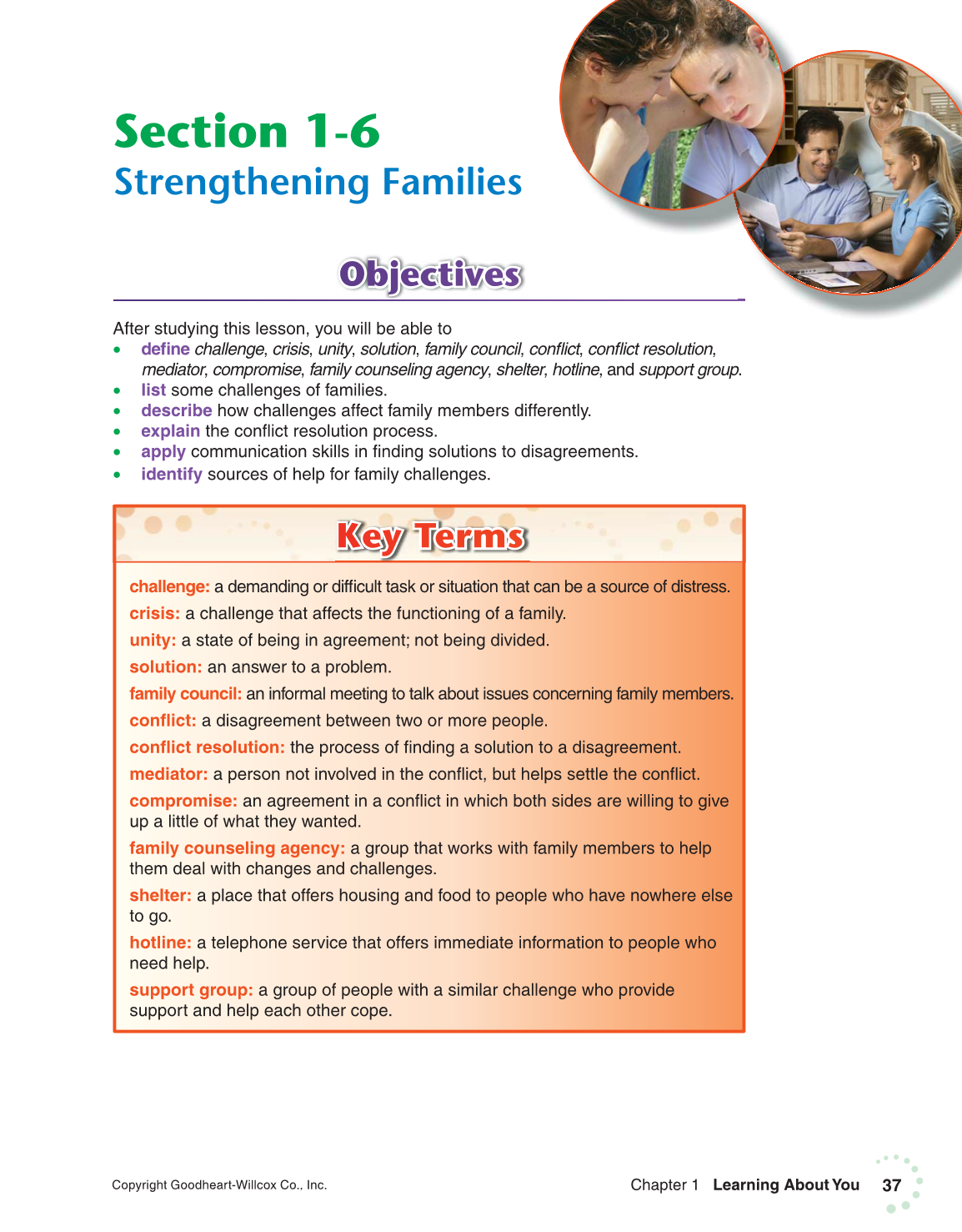 • defi ne challenge, crisis, unity, solution, family council, confl ict, confl ict resolution,
