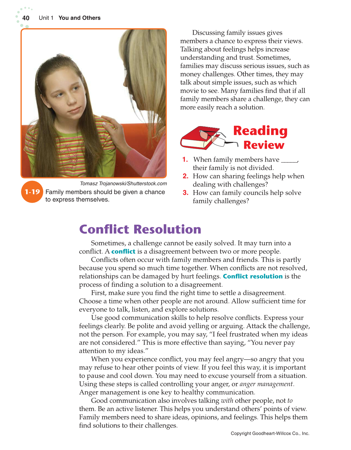 Use good communication skills to help resolve confl icts. Express your