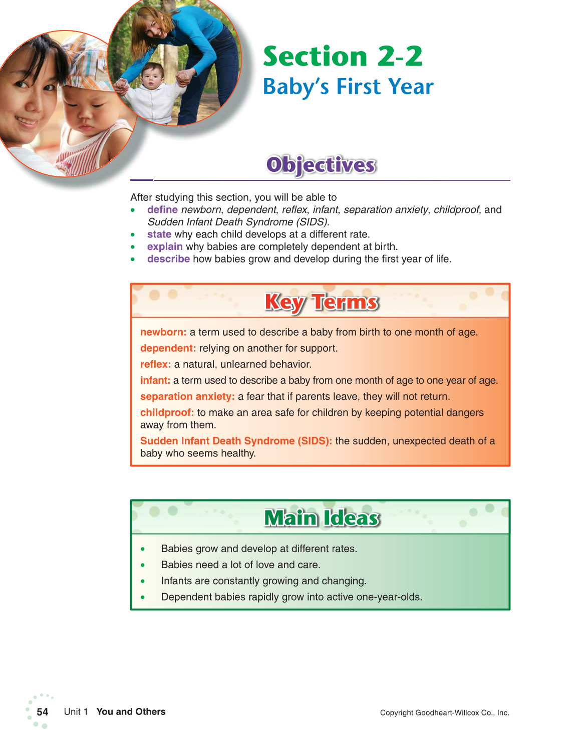 • defi ne newborn, dependent, refl ex, infant, separation anxiety, childproof, and