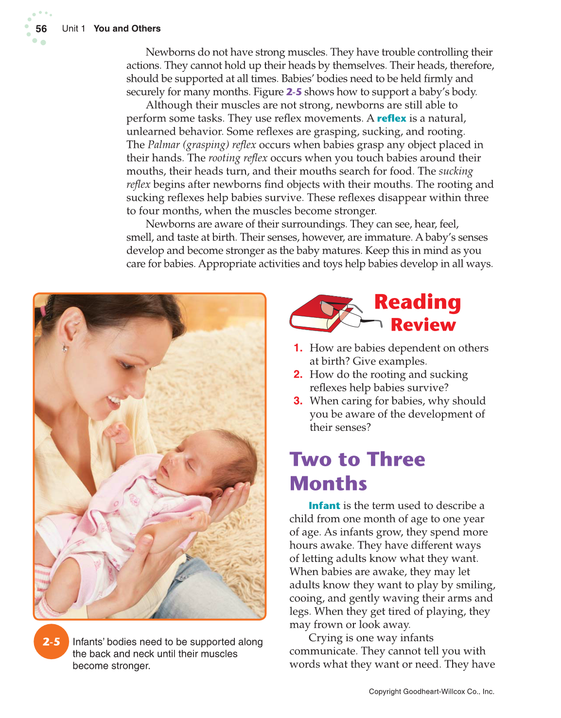 unlearned behavior. Some refl exes are grasping, sucking, and rooting.