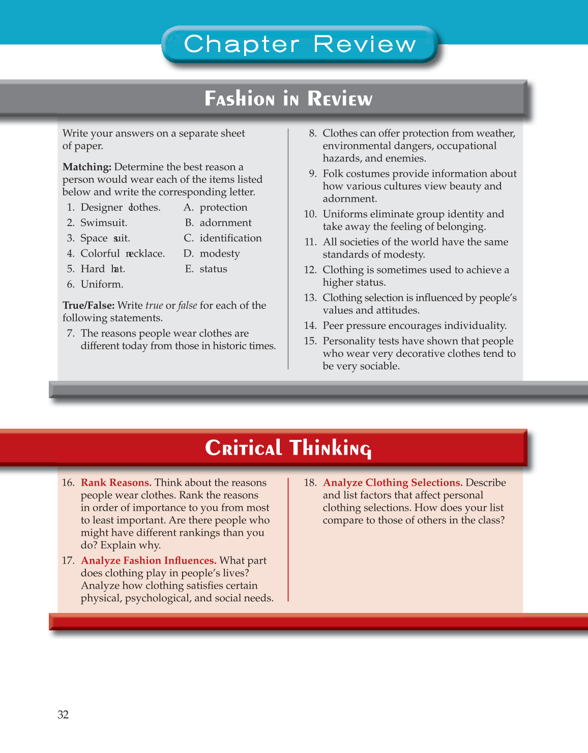 13. Clothing selection is infl uenced by people’s