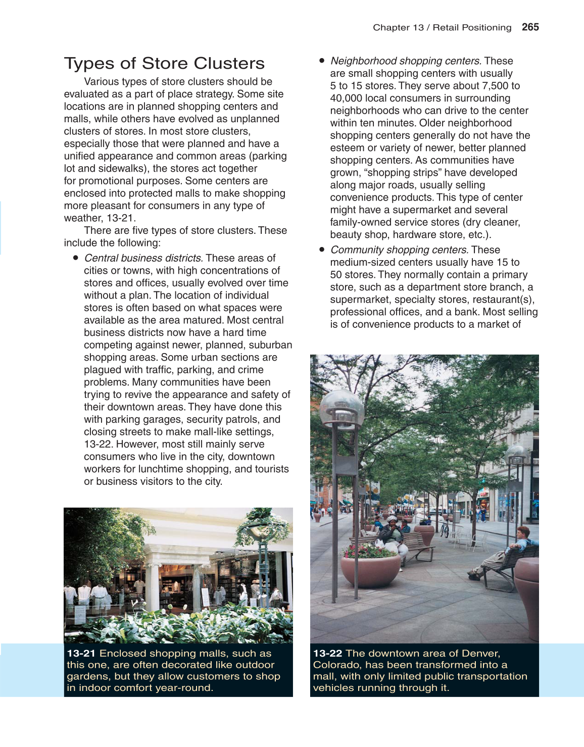 13-21 Enclosed shopping malls, such as