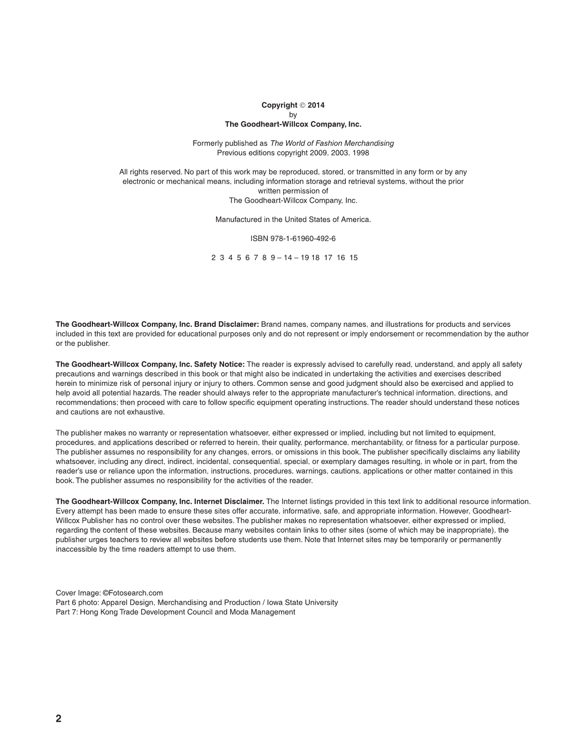 The Goodheart-Willcox Company, Inc. Internet Disclaimer. The Internet listings provided in this text link to additional resource information.