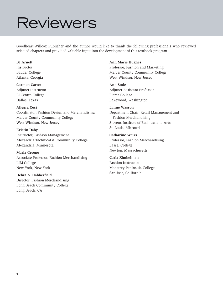 Goodheart-Willcox Publisher and the author would like to thank the following professionals who reviewed