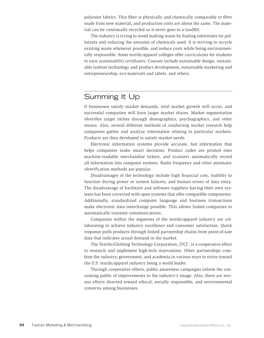 Copyright Goodheart-Willcox Co., Inc. 94 Fashion Marketing &Merchandising
