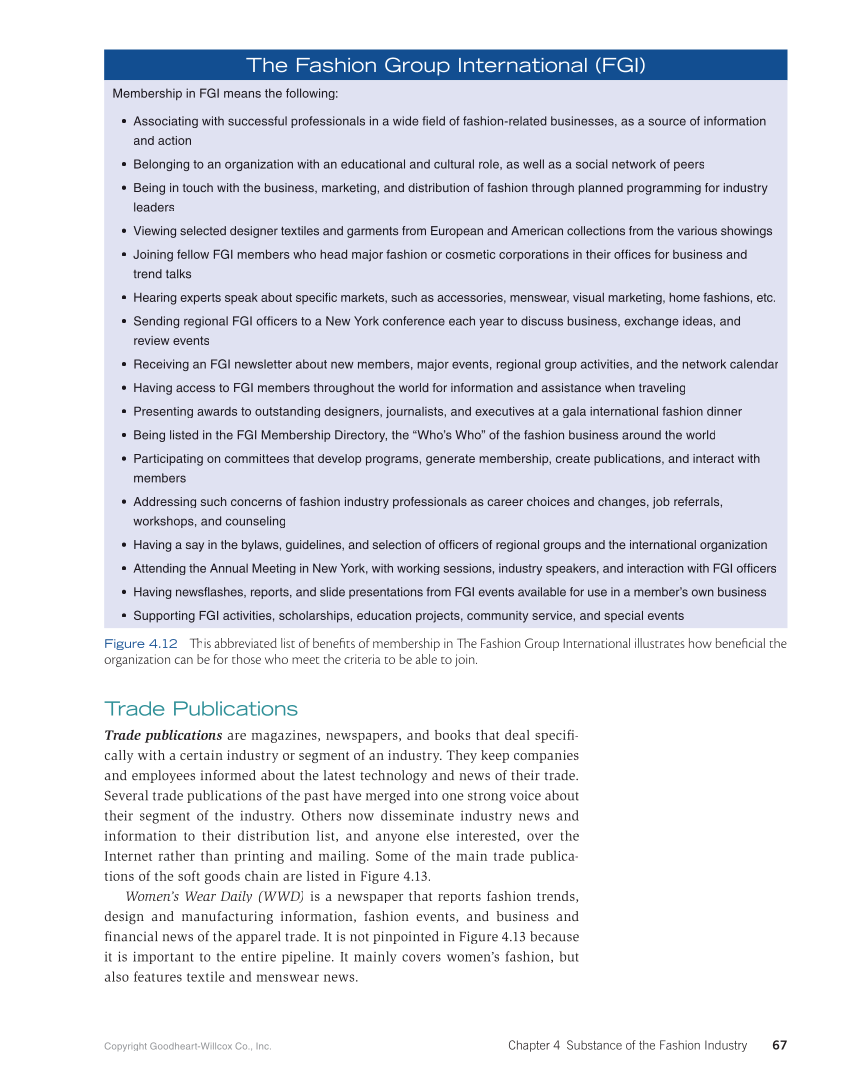 Copyright Goodheart-Willcox Co., Inc. Chapter 4 Substance of the Fashion Industry 67