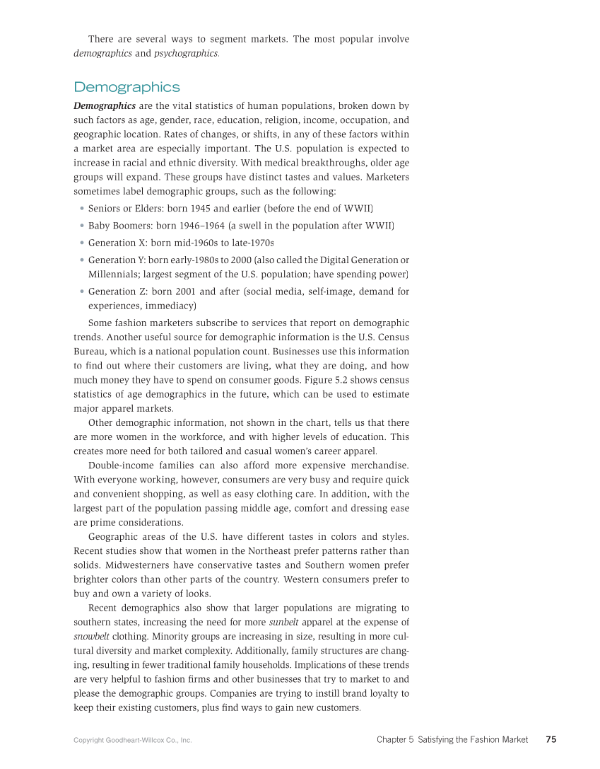 Copyright Goodheart-Willcox Co., Inc. Chapter 5 Satisfying the Fashion Market 75