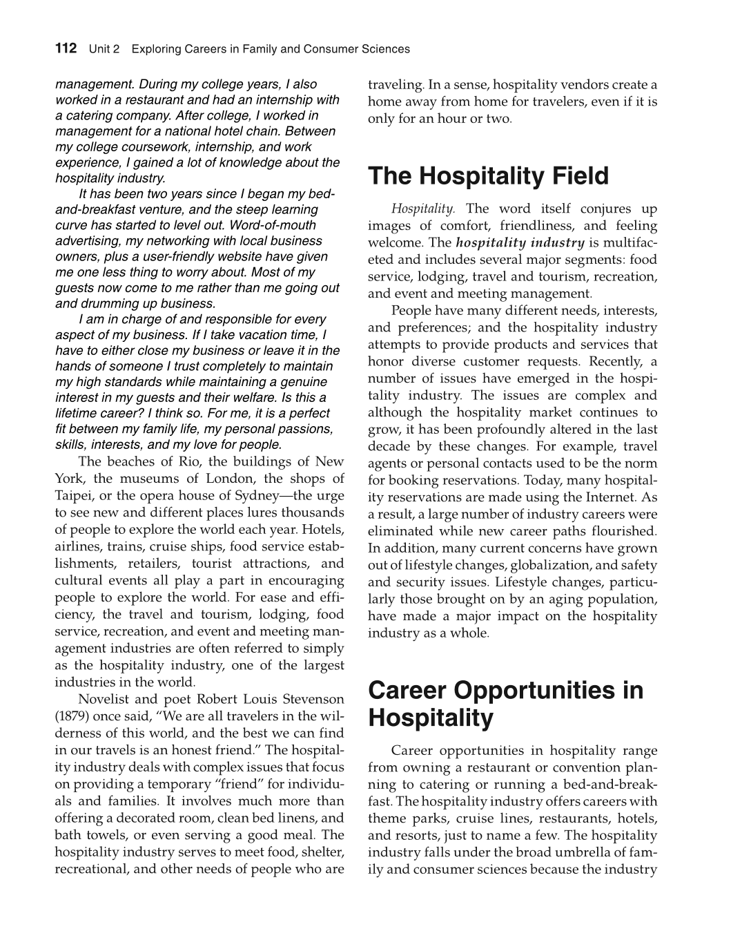 fast. The hospitality industry offers careers with