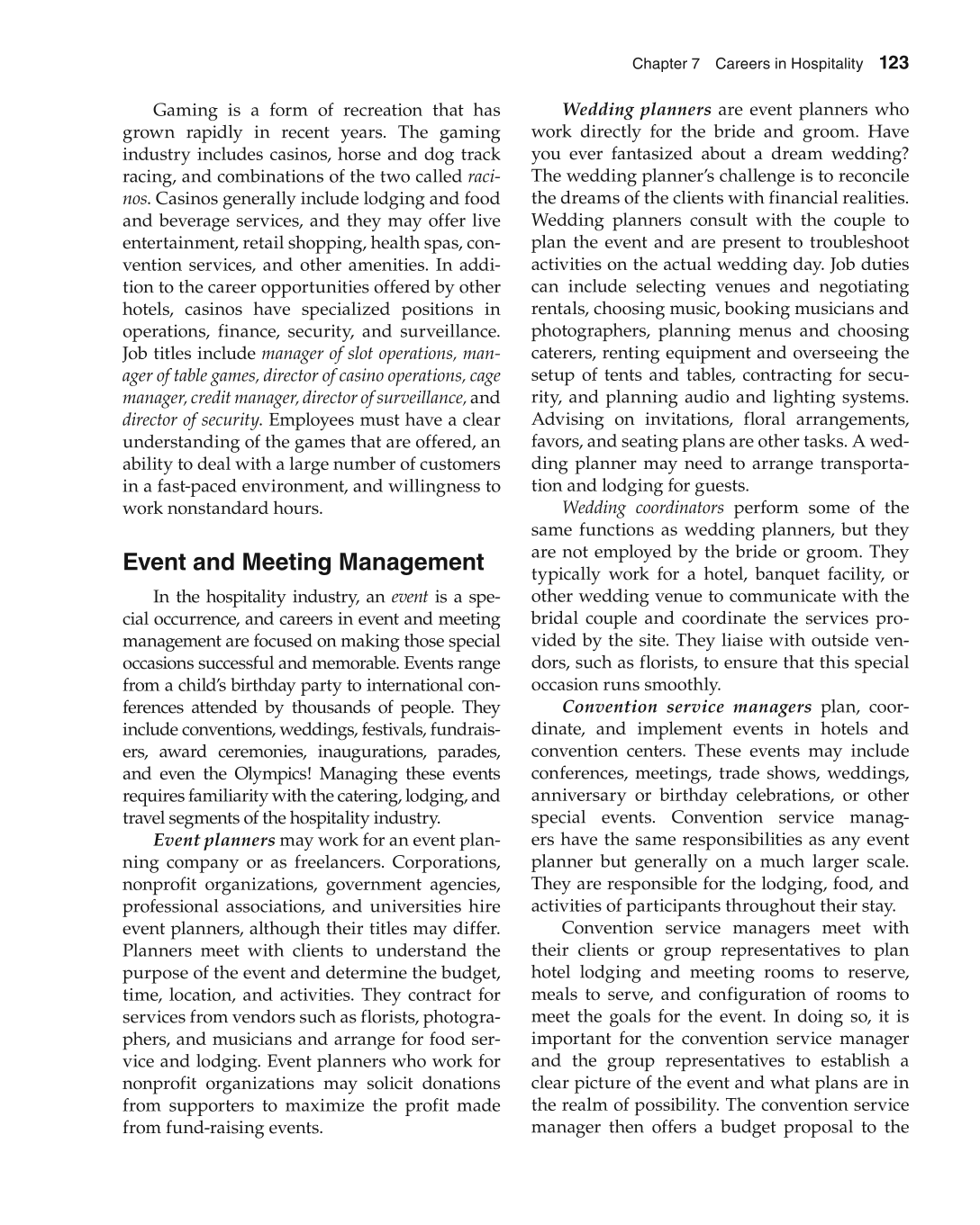Chapter 7 Careers in Hospitality