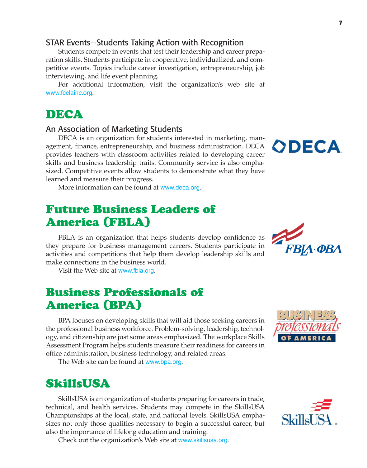 petitive events. Topics include career investigation, entrepreneurship, job