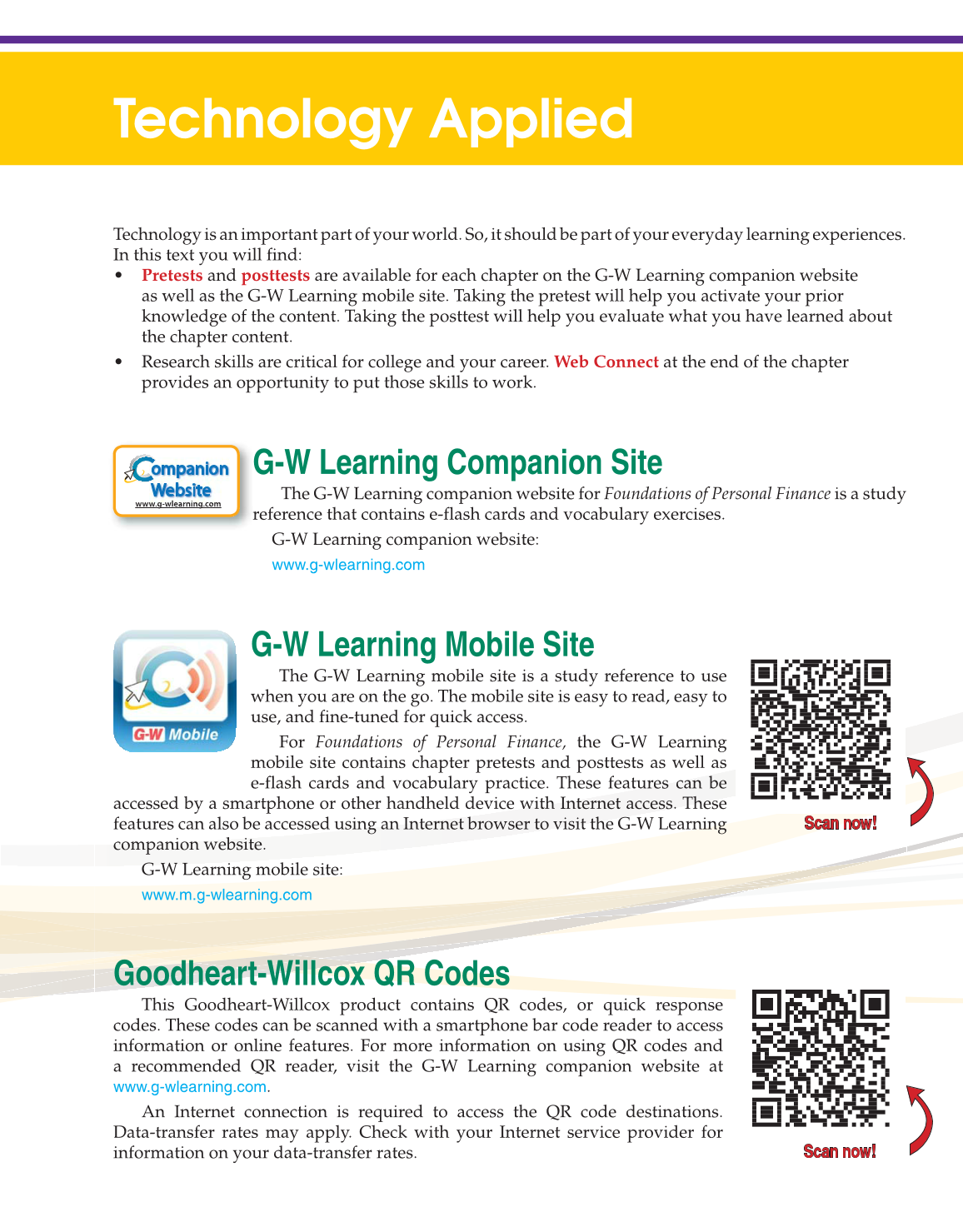 The G-W Learning companion website for Foundations of Personal Finance is a study