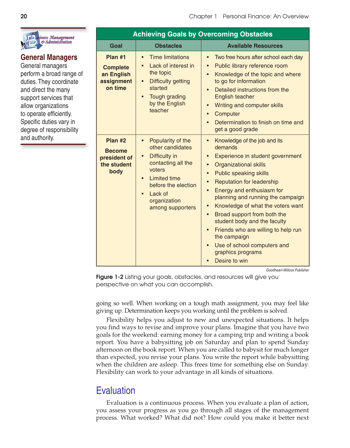 Figure 1-2 Listing your goals, obstacles, and resources will give you