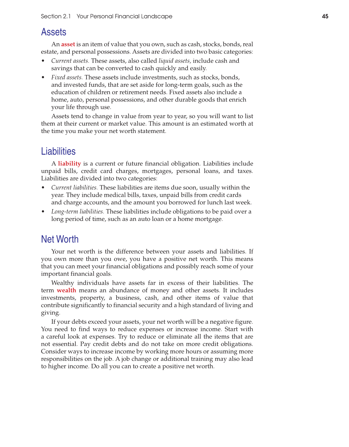 Section 2.1 Your Personal Financial Landscape 45