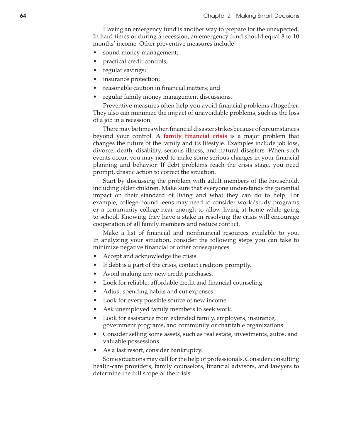 planning and behavior. If debt problems reach the crisis stage, you need