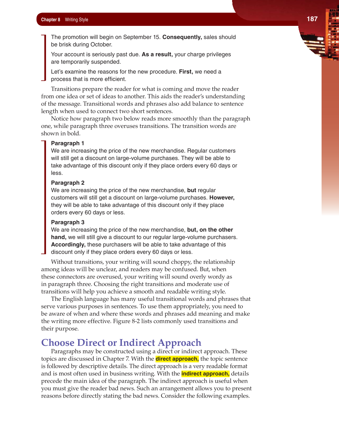 the writing more effective. Figure 8-2 lists commonly used transitions and