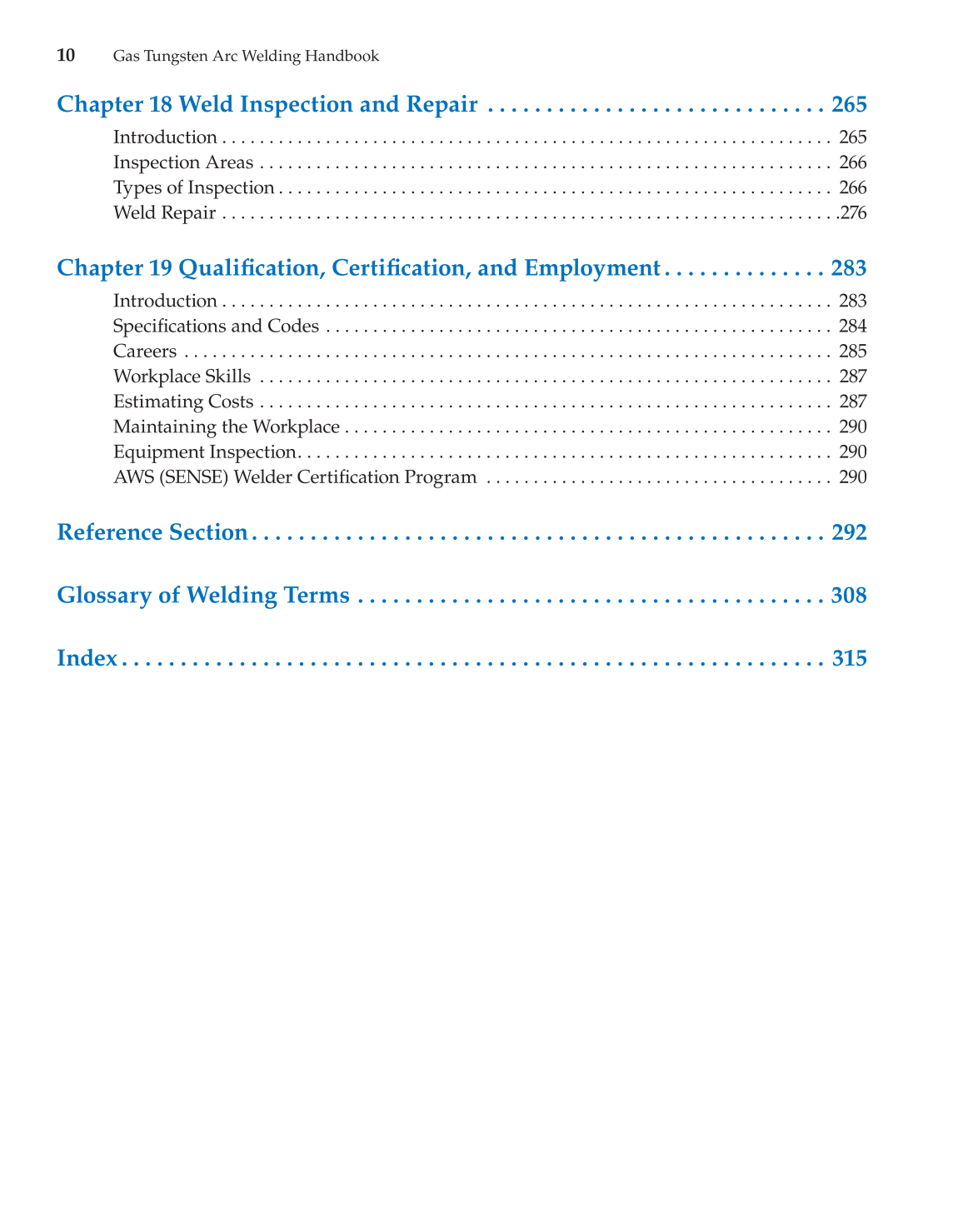 Glossary of Welding Terms . . . . . . . . . . . . . . . . . . . . . . . . . . . . . . . . . . . . . . . . 308
