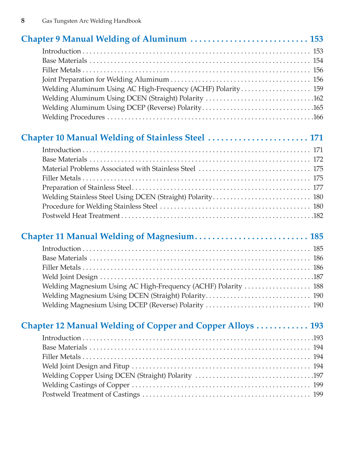 Welding Magnesium Using DCEP (Reverse) Polarity . . . . . . . . . . . . . . . . . . . . . . . . . . . . . . 190