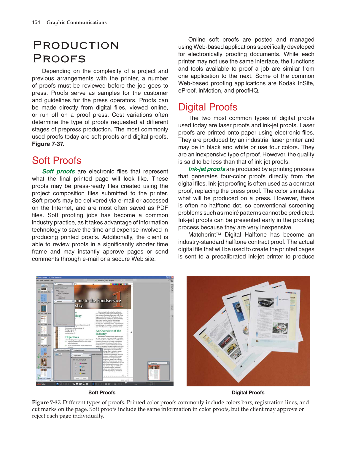 Figure 7-37. Different types of proofs. Printed color proofs commonly include colors bars, registration lines, and
