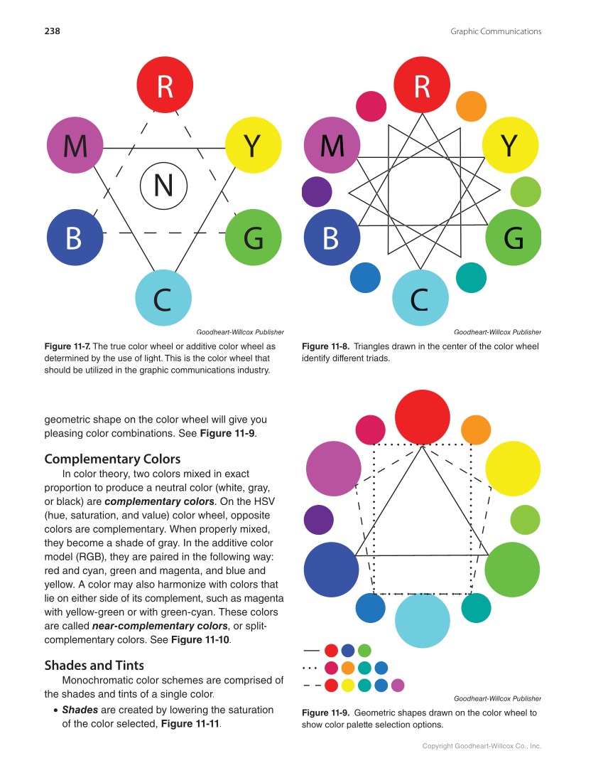 Figure 11-9. Geometric shapes drawn on the color wheel to