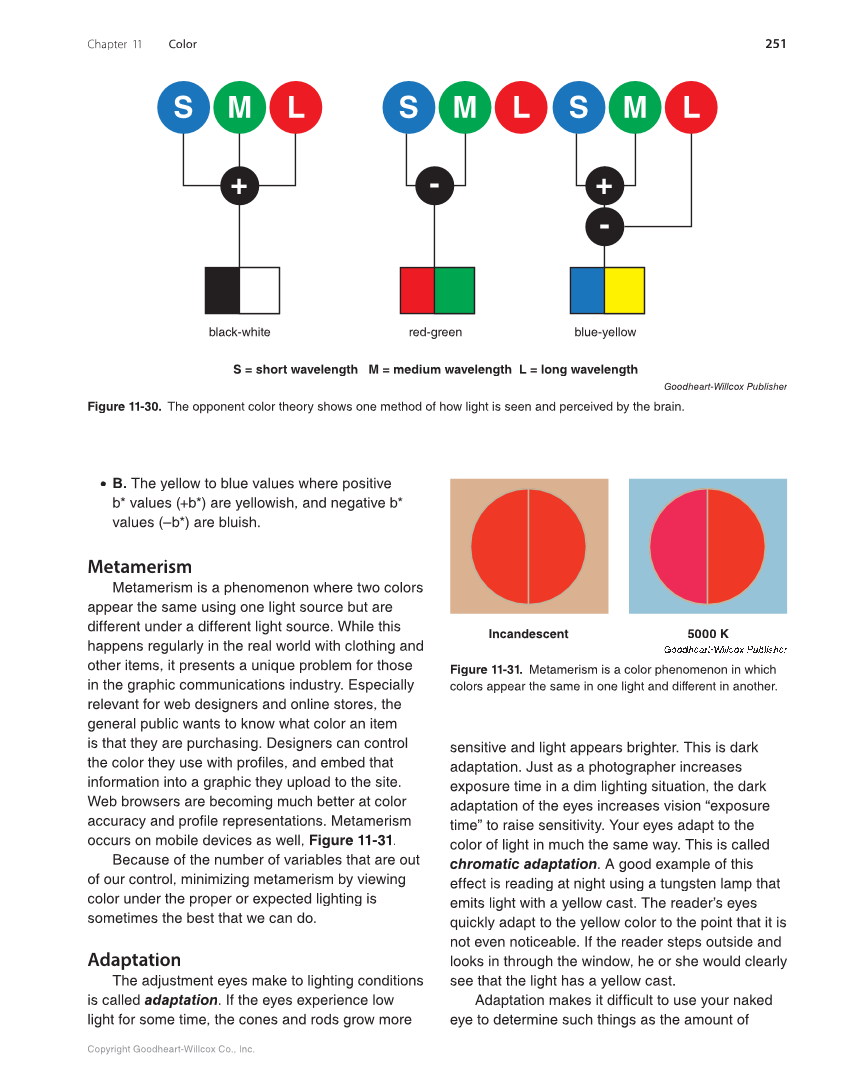 Figure 11-30. The opponent color theory shows one method of how light is seen and perceived by the brain.