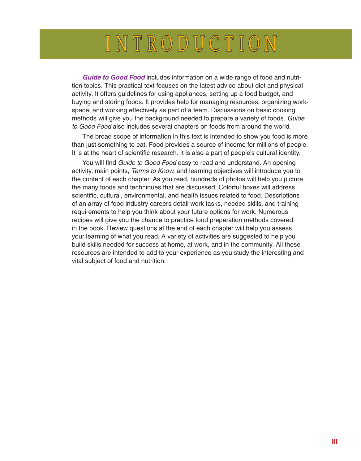 You will fi nd Guide to Good Food easy to read and understand. An opening