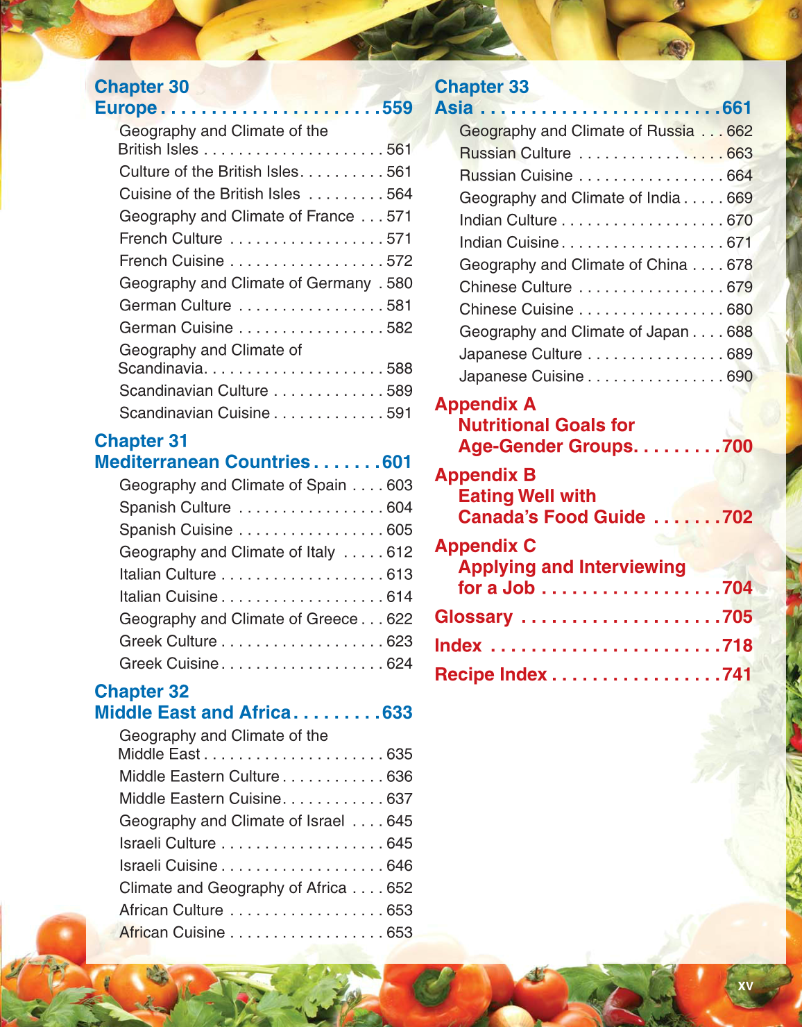 Middle Eastern Cuisine. . . . . . . . . . . . 637