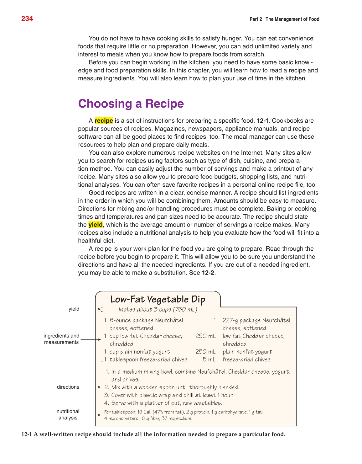 12-1 A well-written recipe should include all the information needed to prepare a particular food.