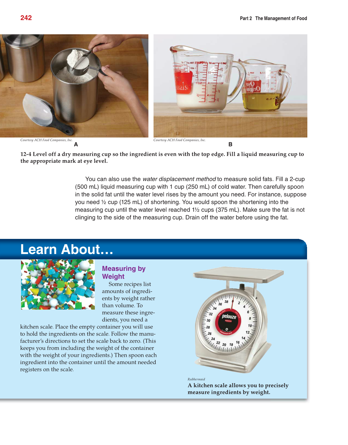 12-4 Level off a dry measuring cup so the ingredient is even with the top edge. Fill a liquid measuring cup to