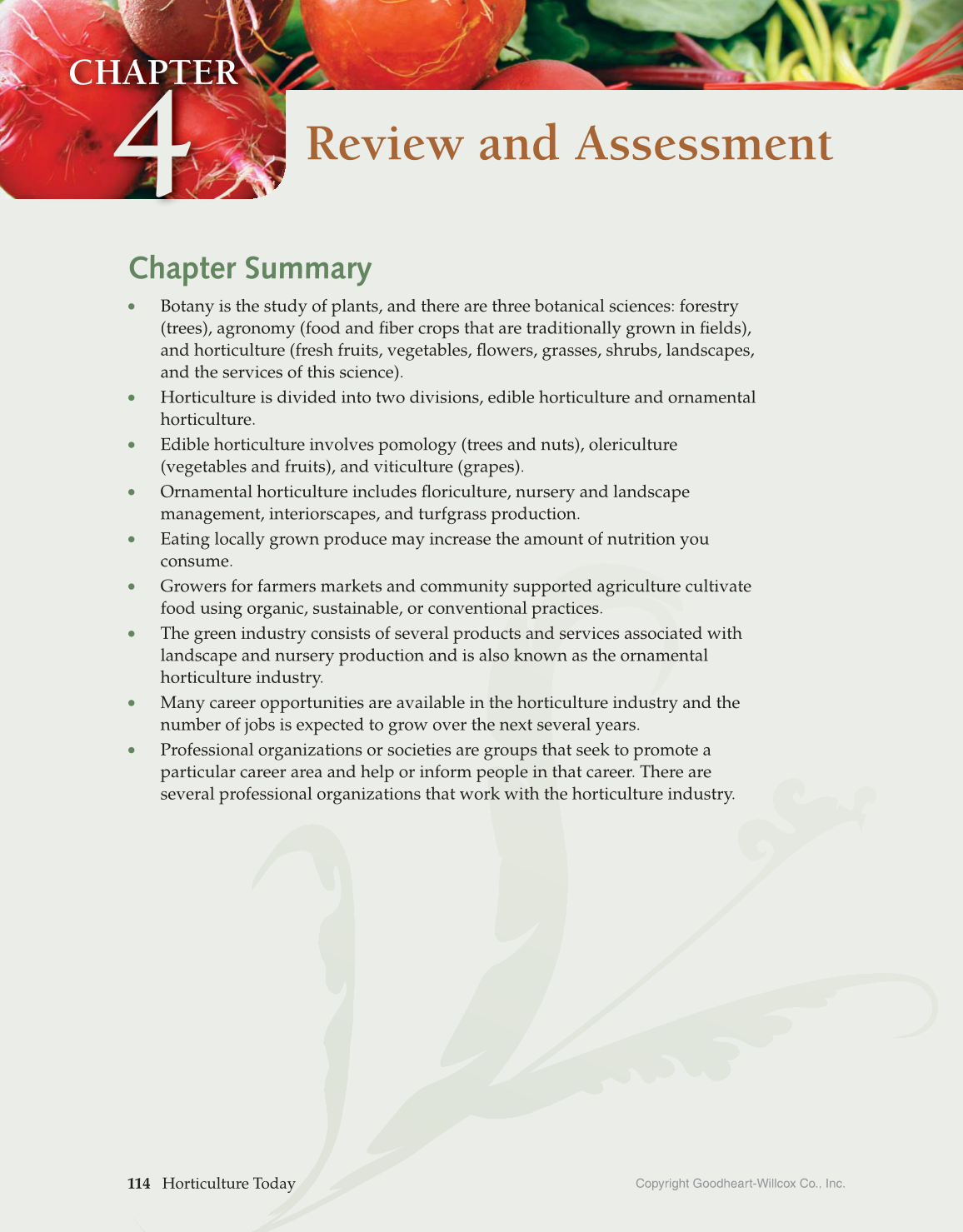 and horticulture (fresh fruits, vegetables, fl owers, grasses, shrubs, landscapes,