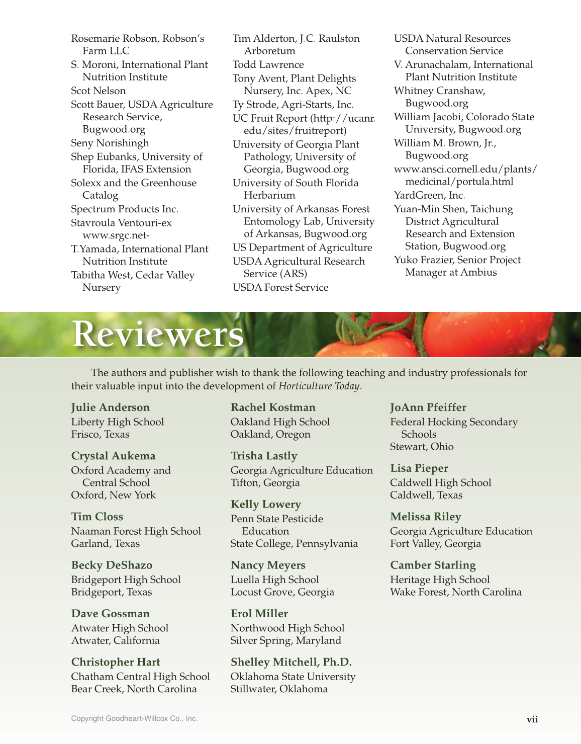 The authors and publisher wish to thank the following teaching and industry professionals for