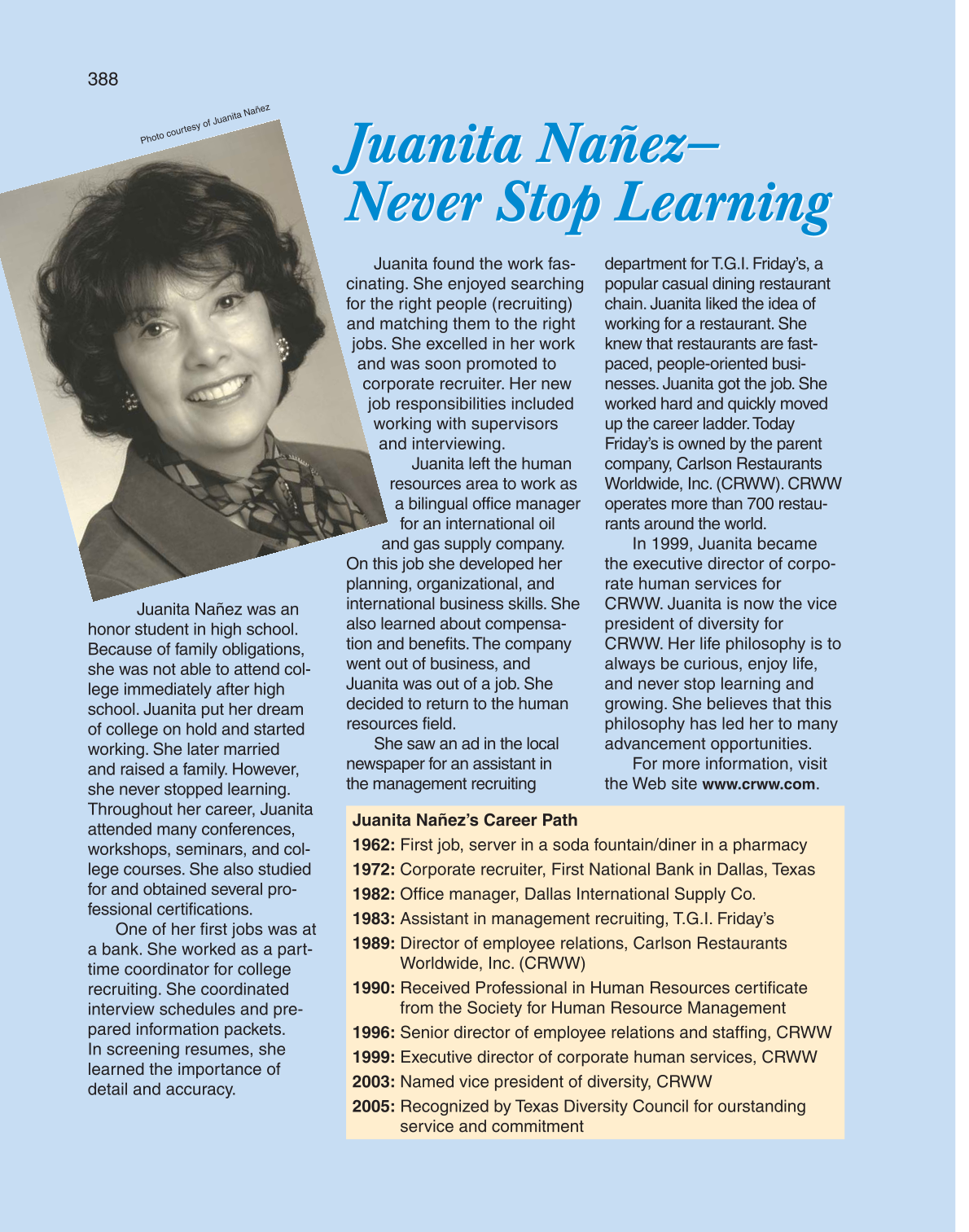 CRWW. Juanita is now the vice