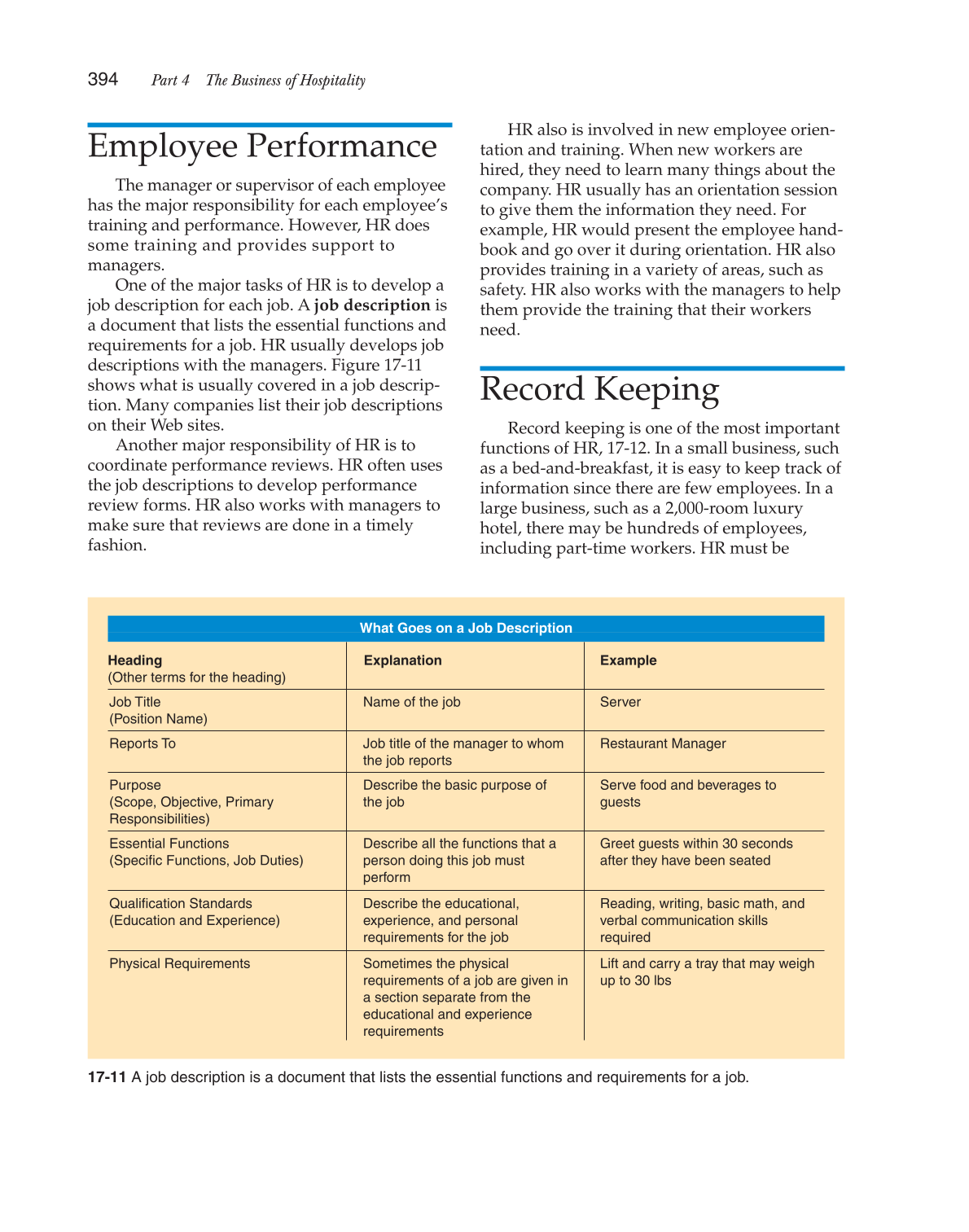 17-11 A job description is a document that lists the essential functions and requirements for a job.