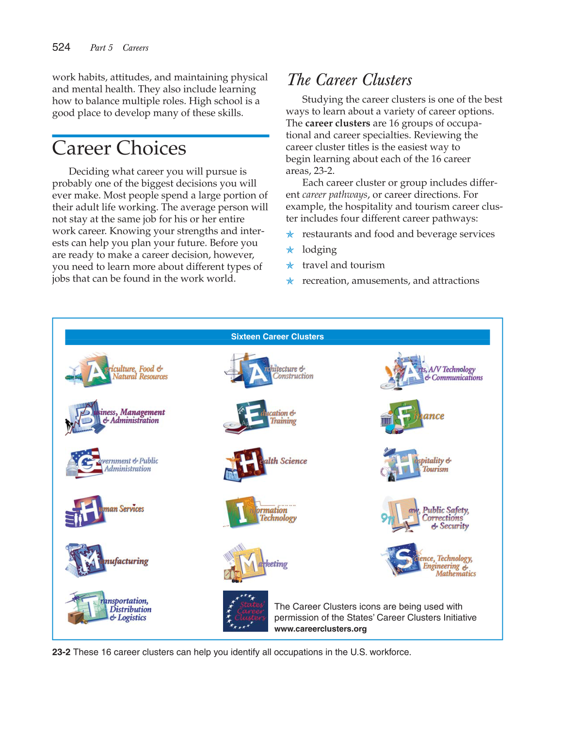 23-2 These 16 career clusters can help you identify all occupations in the U.S. workforce.