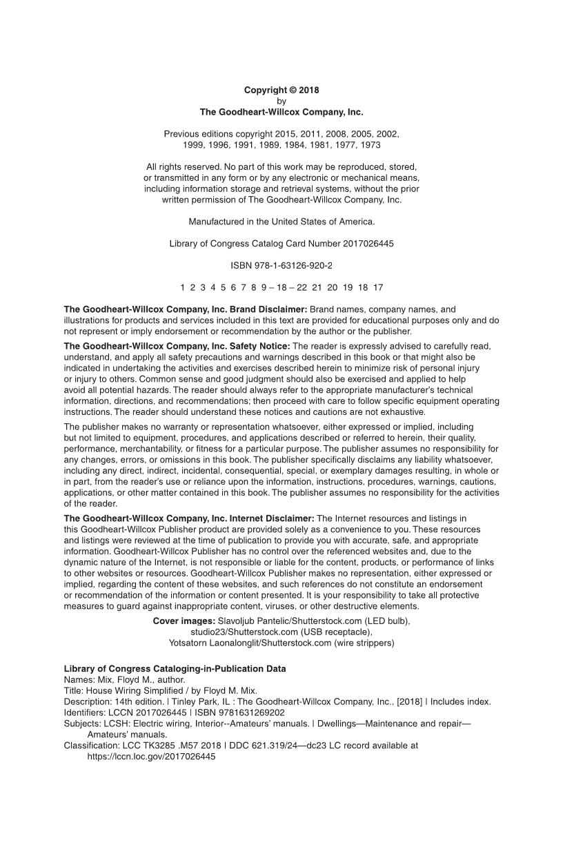 The Goodheart-Willcox Company, Inc. Safety Notice: The reader is expressly advised to carefully read,