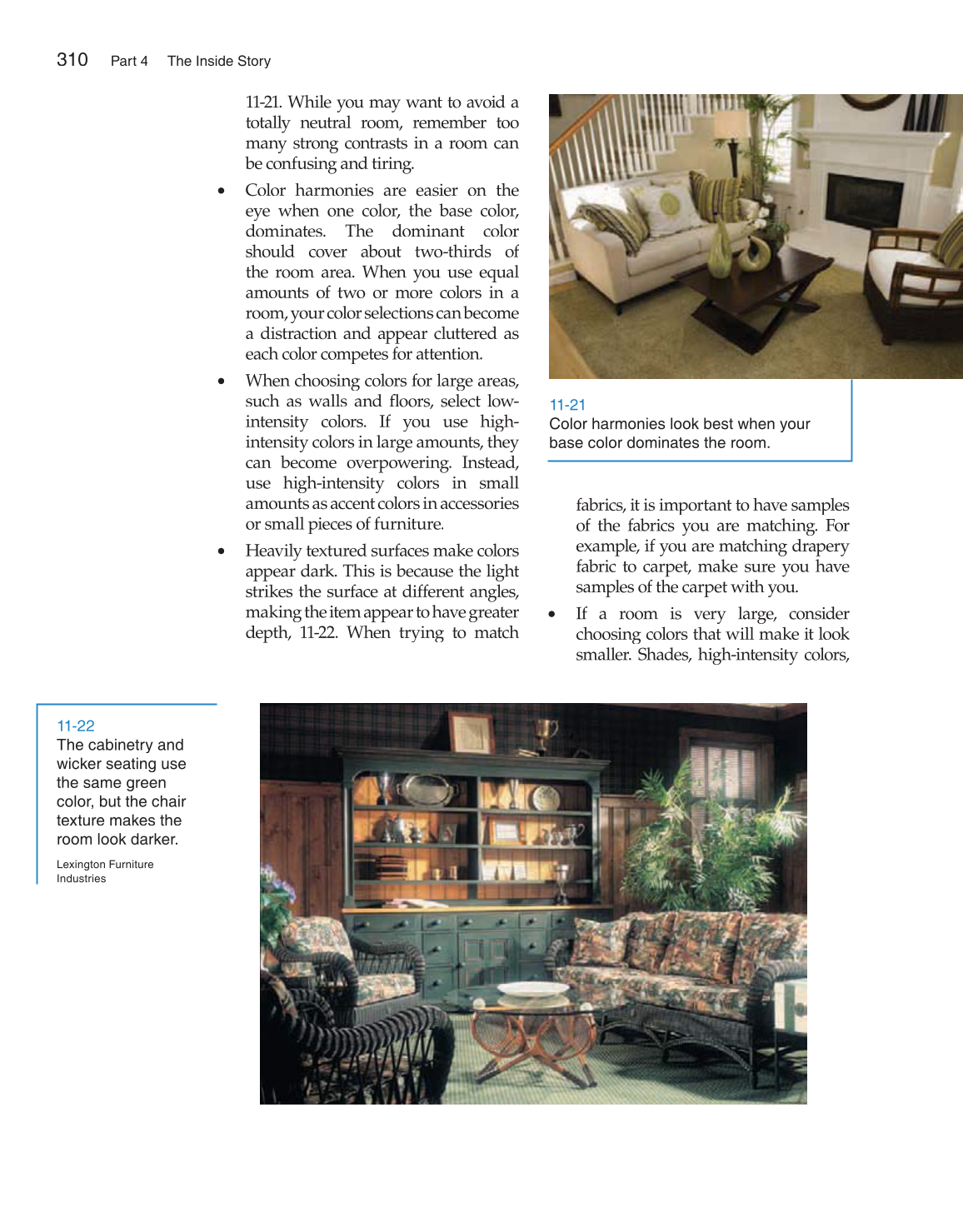 • When choosing colors for large areas,