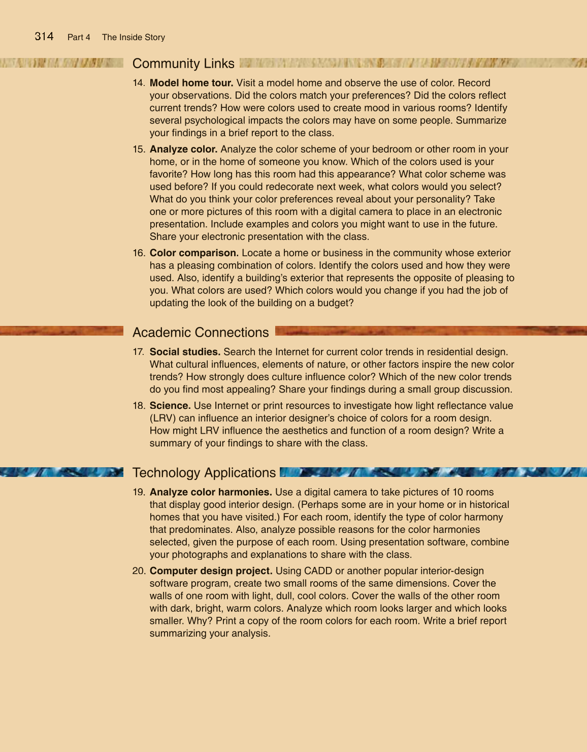 14. Model home tour. Visit a model home and observe the use of color. Record