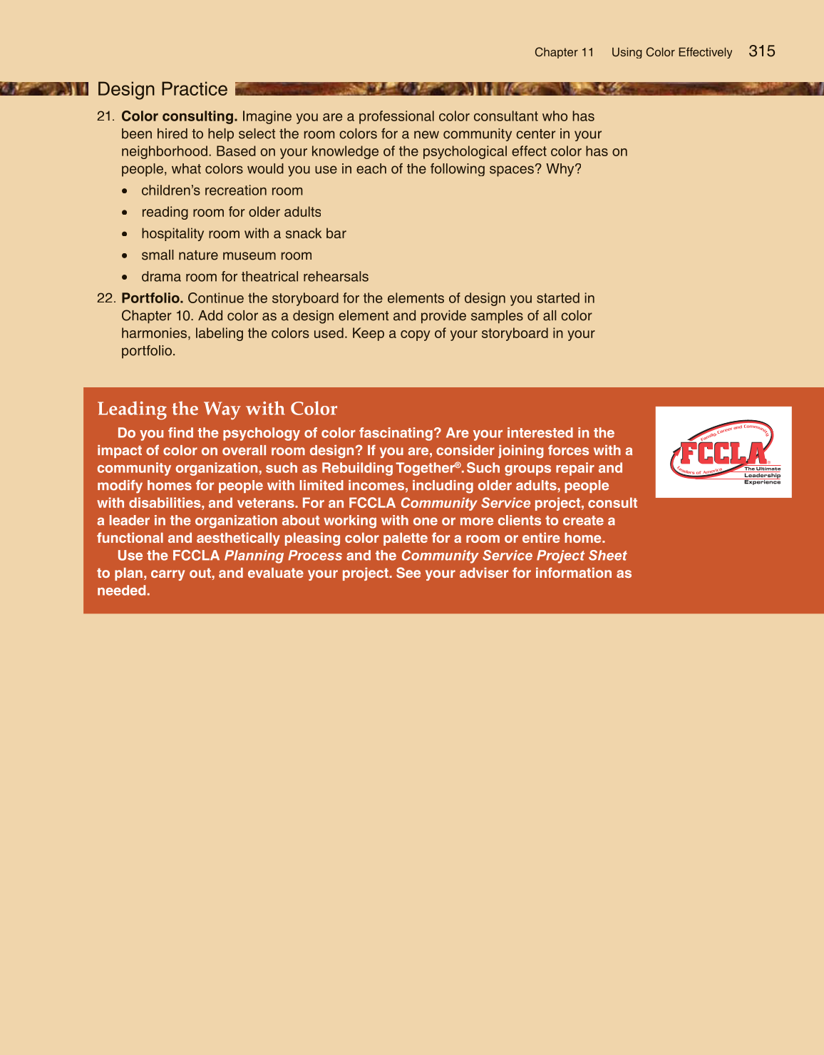 with disabilities, and veterans. For an FCCLA Community Service project, consult