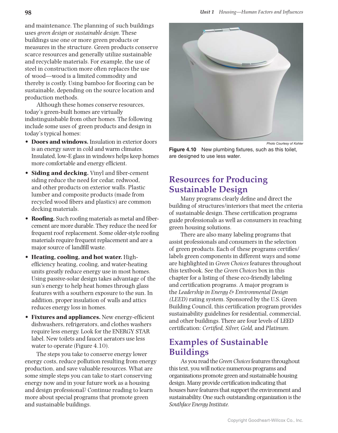 Figure 4.10 New plumbing fixtures, such as this toilet,