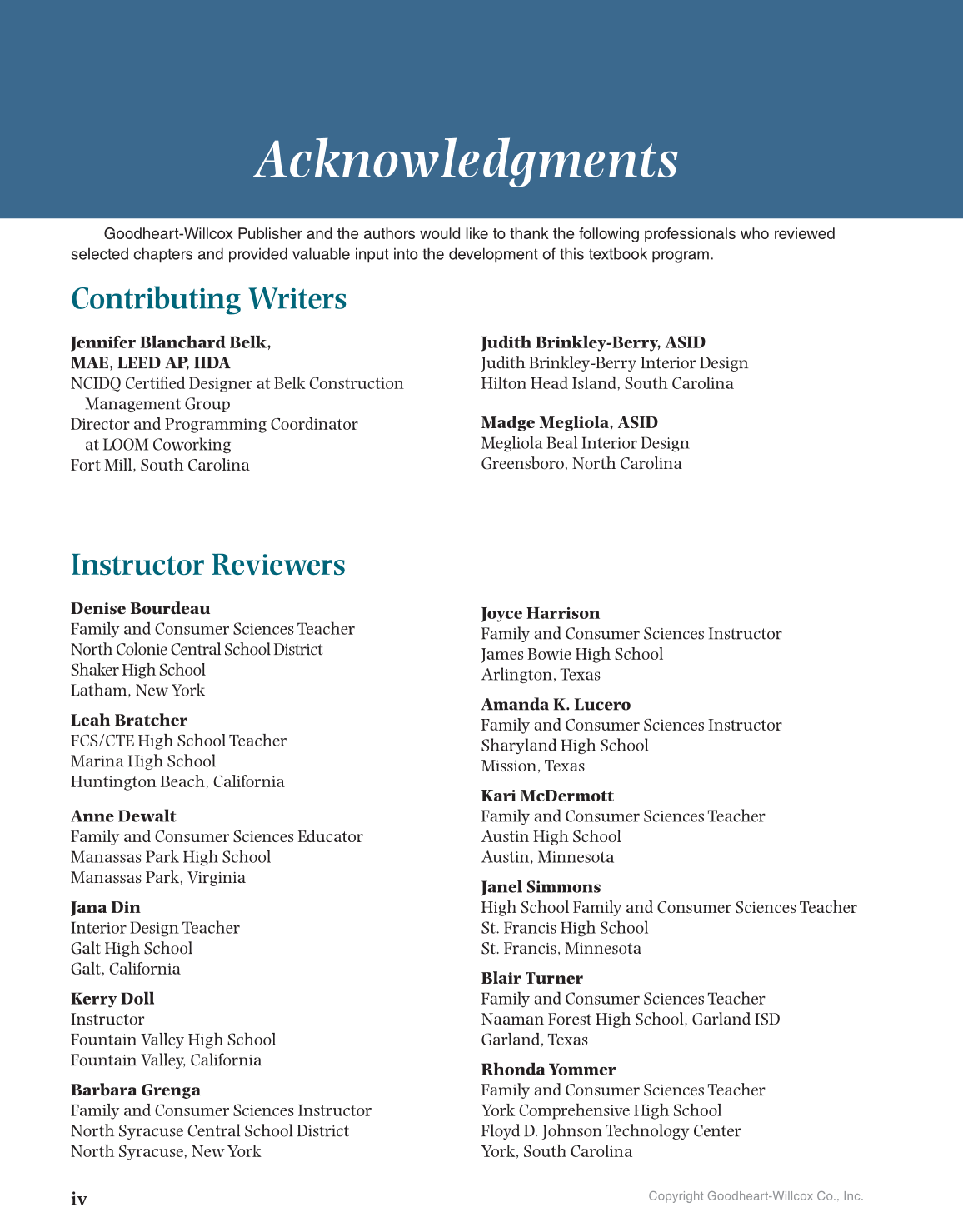 Goodheart-Willcox Publisher and the authors would like to thank the following professionals who reviewed