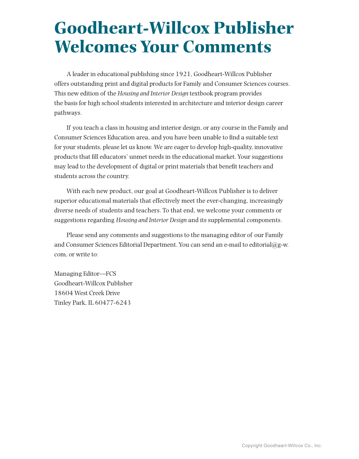 With each new product, our goal at Goodheart-Willcox Publisher is to deliver