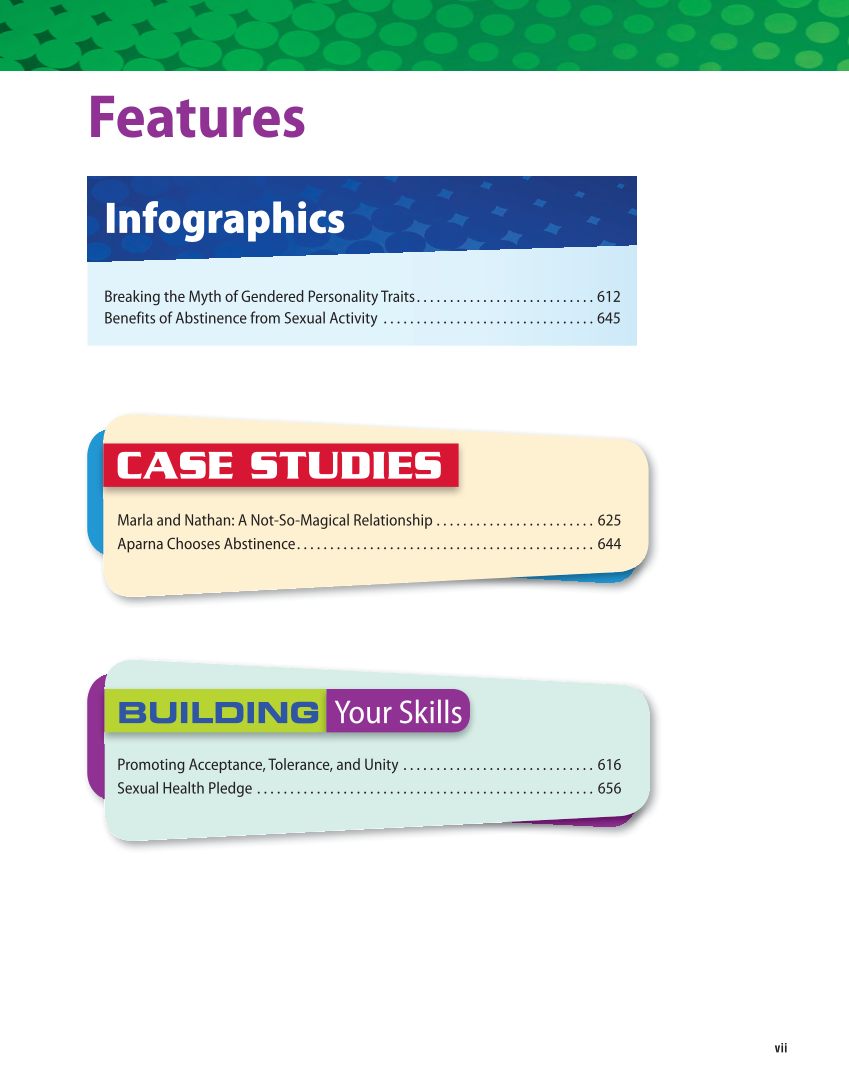 vii Promoting Acceptance, Tolerance, and Unity . . . . . . . . . . . . . . . . . . . . . . . . . . . . . 616 Sexual Health Pledge . . . . . . . . . . . . . . . . . . . . . . . . . . . . . . . . . . . . . . . . . . . . . . . . . . . 656 BUILDING Your Skills Your Skills CASE STUDIES CASE STUDIES Marla and Nathan: A Not-So-Magical Relationship . . . . . . . . . . . . . . . . . . . . . . . . 625 Aparna Chooses Abstinence . . . . . . . . . . . . . . . . . . . . . . . . . . . . . . . . . . . . . . . . . . . . . 644 Features Infographics Breaking the Myth of Gendered Personality Traits . . . . . . . . . . . . . . . . . . . . . . . . . . . 612 Benefits of Abstinence from Sexual Activity . . . . . . . . . . . . . . . . . . . . . . . . . . . . . . . . 645