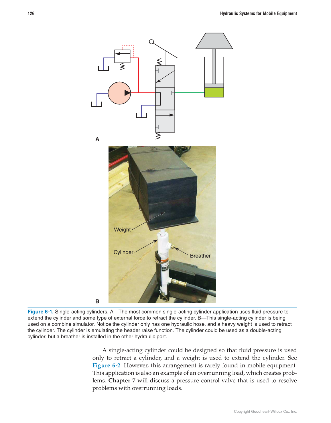 extend the cylinder and some type of external force to retract the cylinder. B—This single-acting cylinder is being