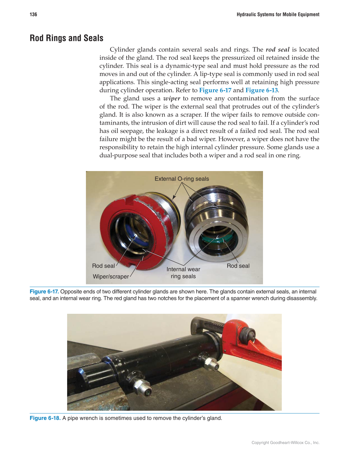 Figure 6-17. Opposite ends of two different cylinder glands are shown here. The glands contain external seals, an internal