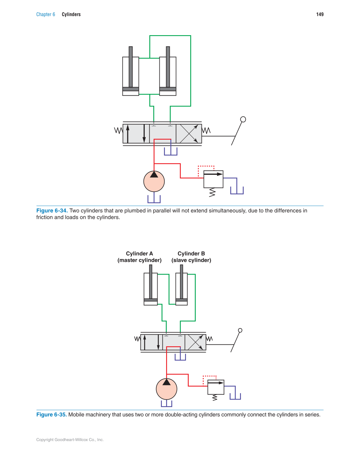 Figure 6-35. Mobile machinery that uses two or more double-acting cylinders commonly connect the cylinders in series.