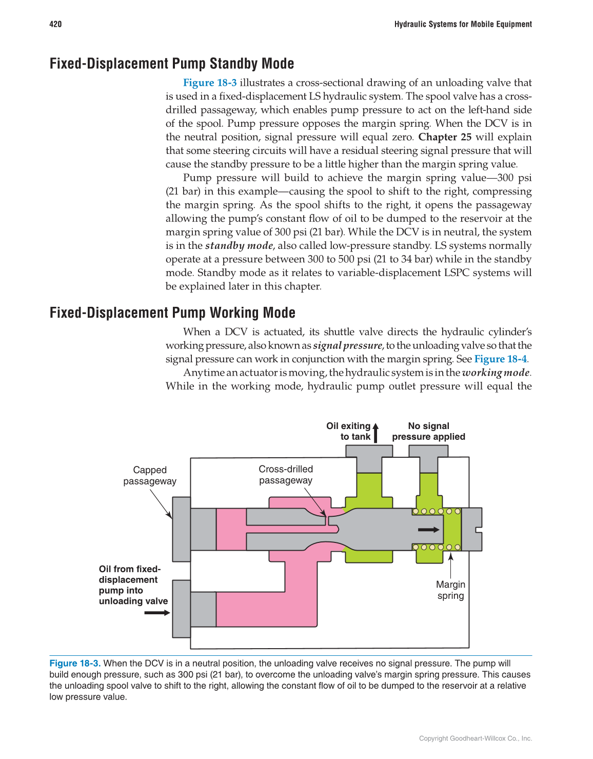 Figure 18-3. When the DCV is in a neutral position, the unloading valve receives no signal pressure. The pump will